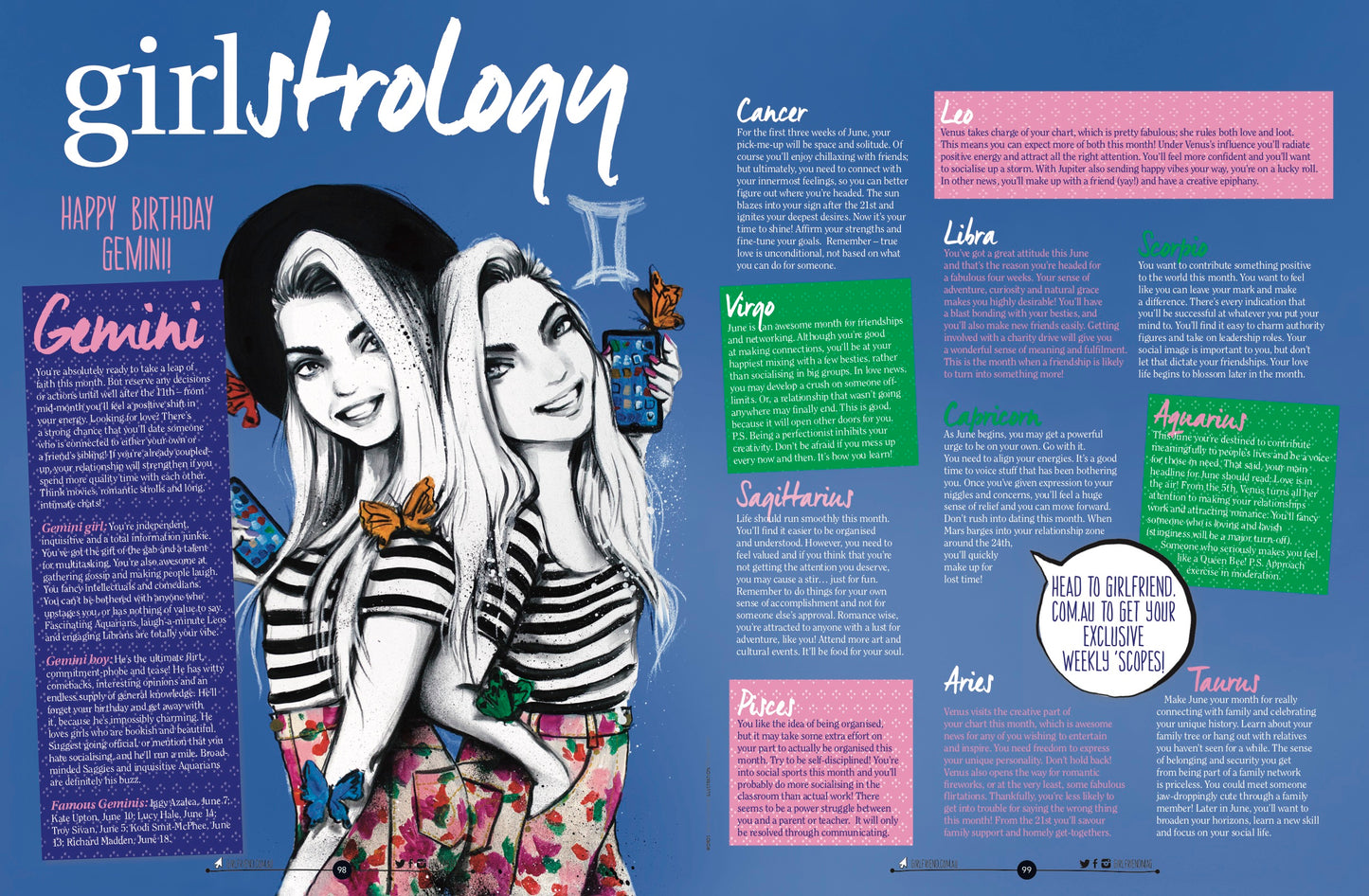 'GIRLSTROLOGY' series illustrated for Girlfriend Magazine (Aus & NZ) for 24 months.