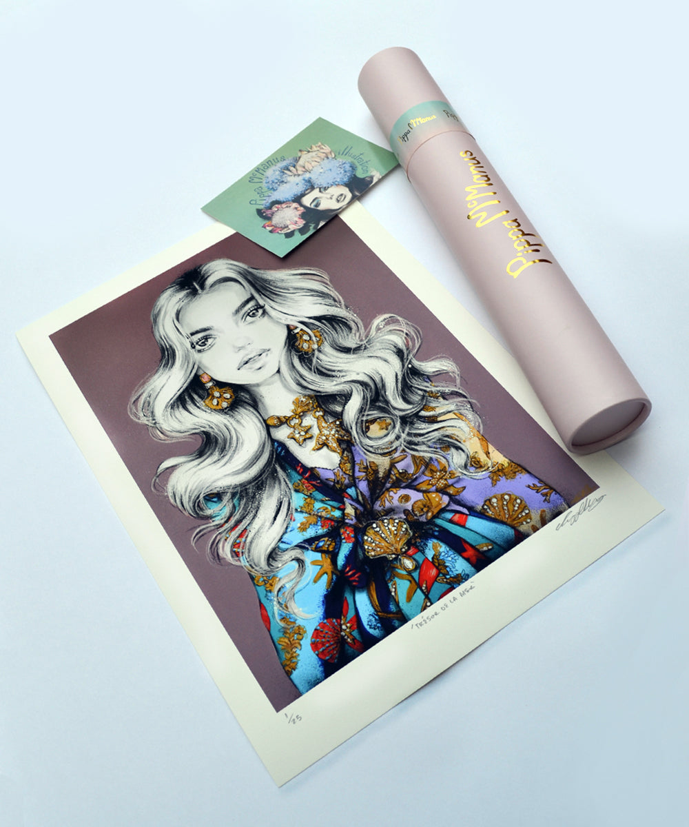 Editioned, titled and signed by the artist. Includes certificate of authenticity. Rolled in acid-free tissue paper and lovingly packed and posted in a pale pink and gold signature Pippa McManus tube.